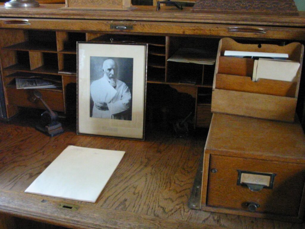 Through a doorway from the laboratory was Hansen’s office, with its imposing roll-top desk, a glass-fronted book-case and impressive collection of pathology specimens and wax casts. It was in this setting – dark and uninviting compared with today’s offices – that Hansen worked through the complex issues of leprosy research in his time.