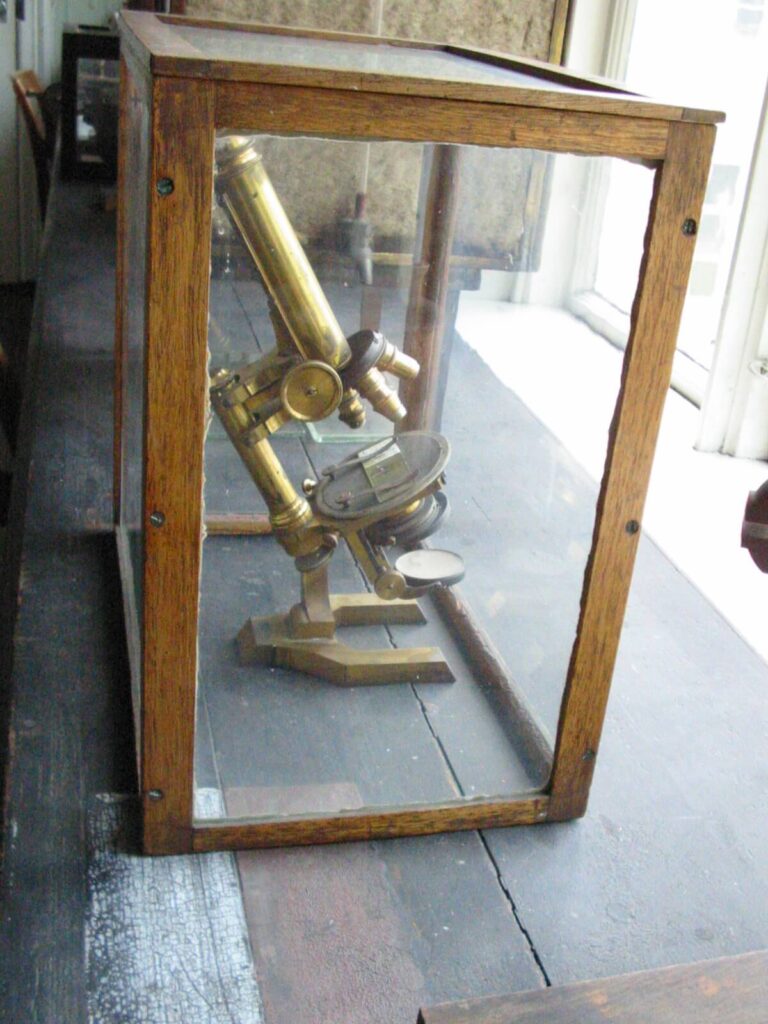 As a microbiologist with a keen interest in history, I was fascinated to see the laboratory and office occupied by this scientific pioneer. Entering the laboratory area, I could see familiar objects – workbench, shelves of chemicals and the insulated chamber for incubating cultures. And there was my favourite piece of equipment, an old-fashioned brass microscope, so different from today’s models, but still enabling the scientist to view tiny bacteria.